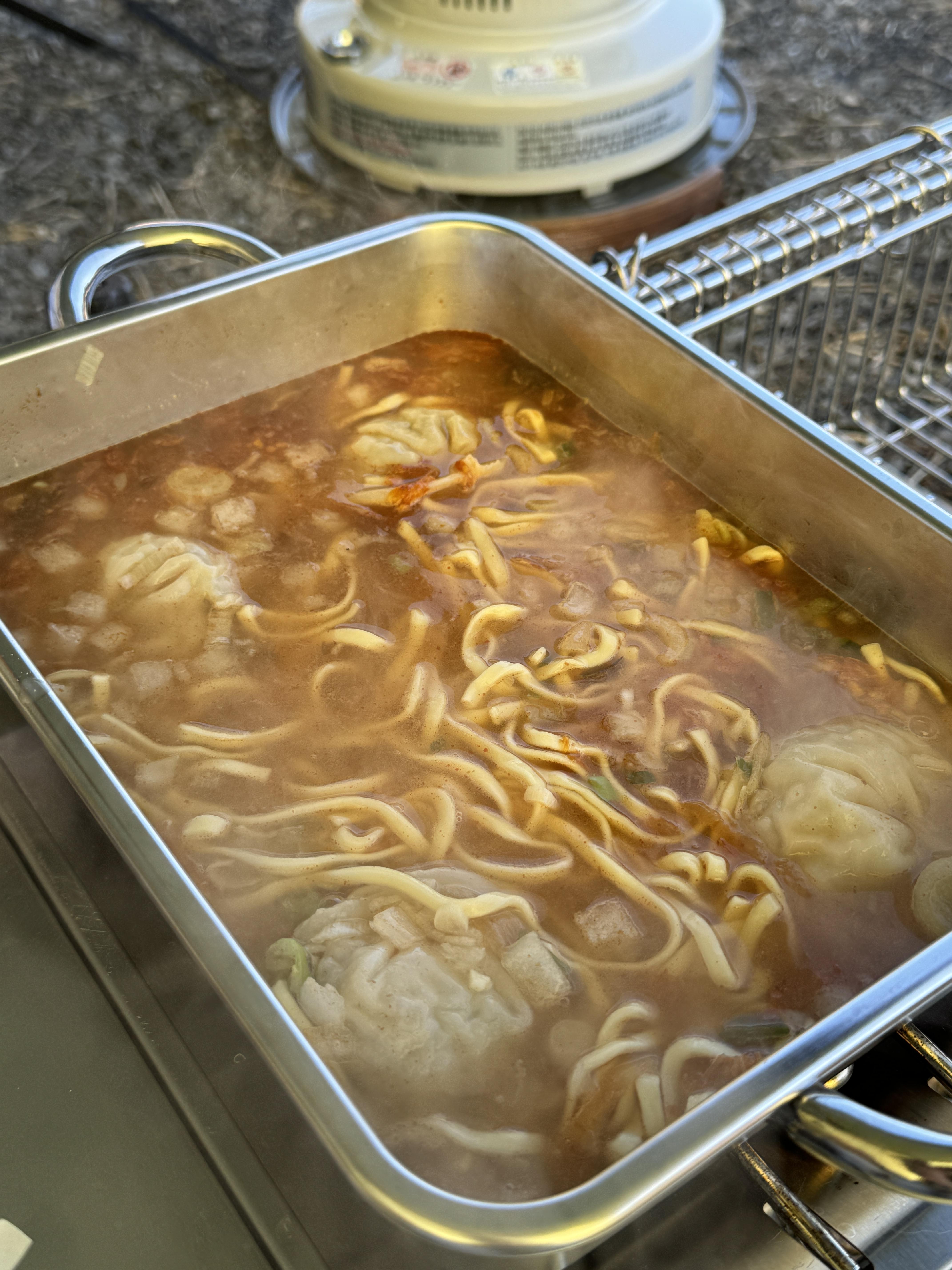 도착하자마자 부랴부랴 텐트를 치고 먹은 김치 만두칼국수 !